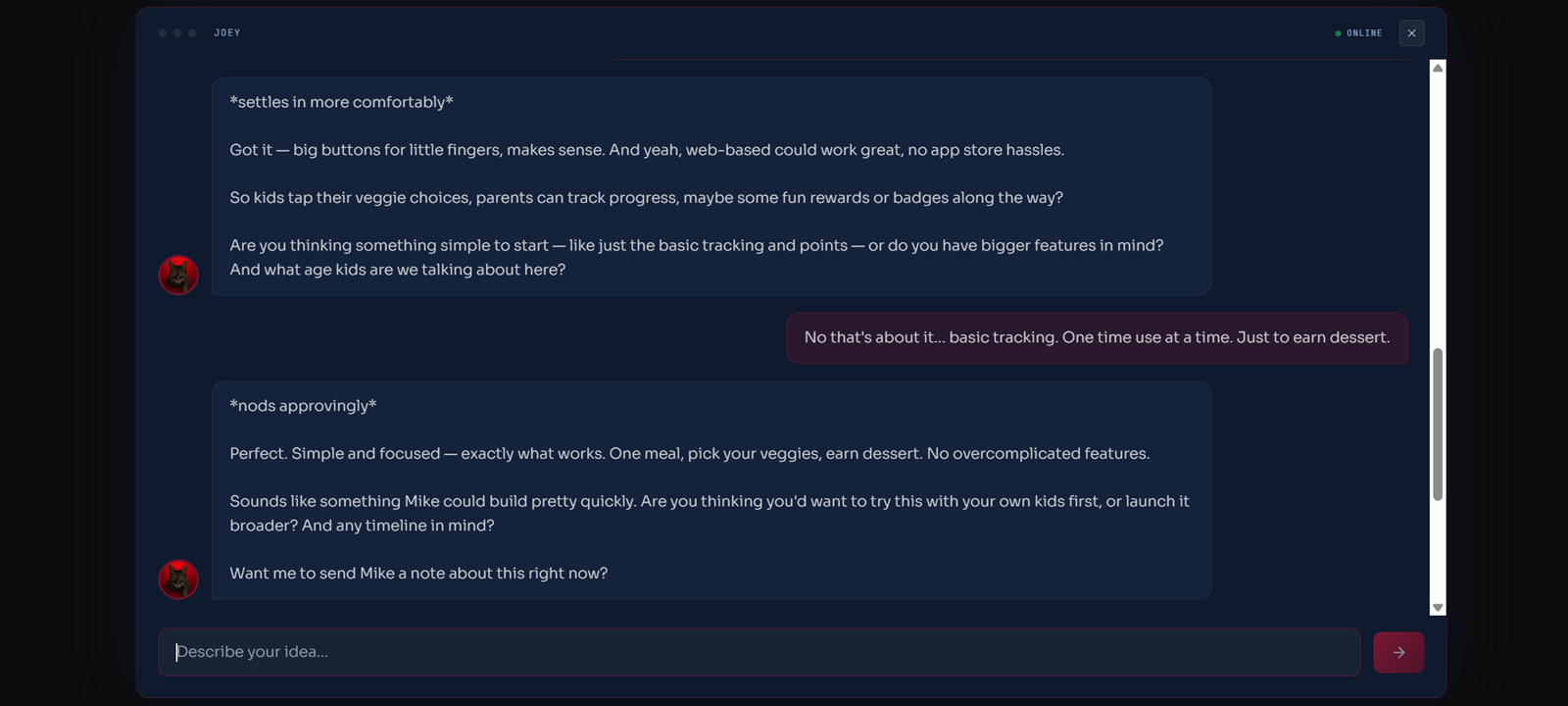 Joey is Mike's AI agent. He'll let Mike know you stopped by.